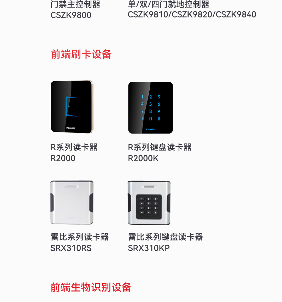 門(mén)禁產(chǎn)品 電梯產(chǎn)品 讀卡器 防爆產(chǎn)品 國密產(chǎn)品 門(mén)禁配件 生物識別產(chǎn)品 停車(chē)場(chǎng)產(chǎn)品 訪(fǎng)客產(chǎn)品 通道閘產(chǎn)品